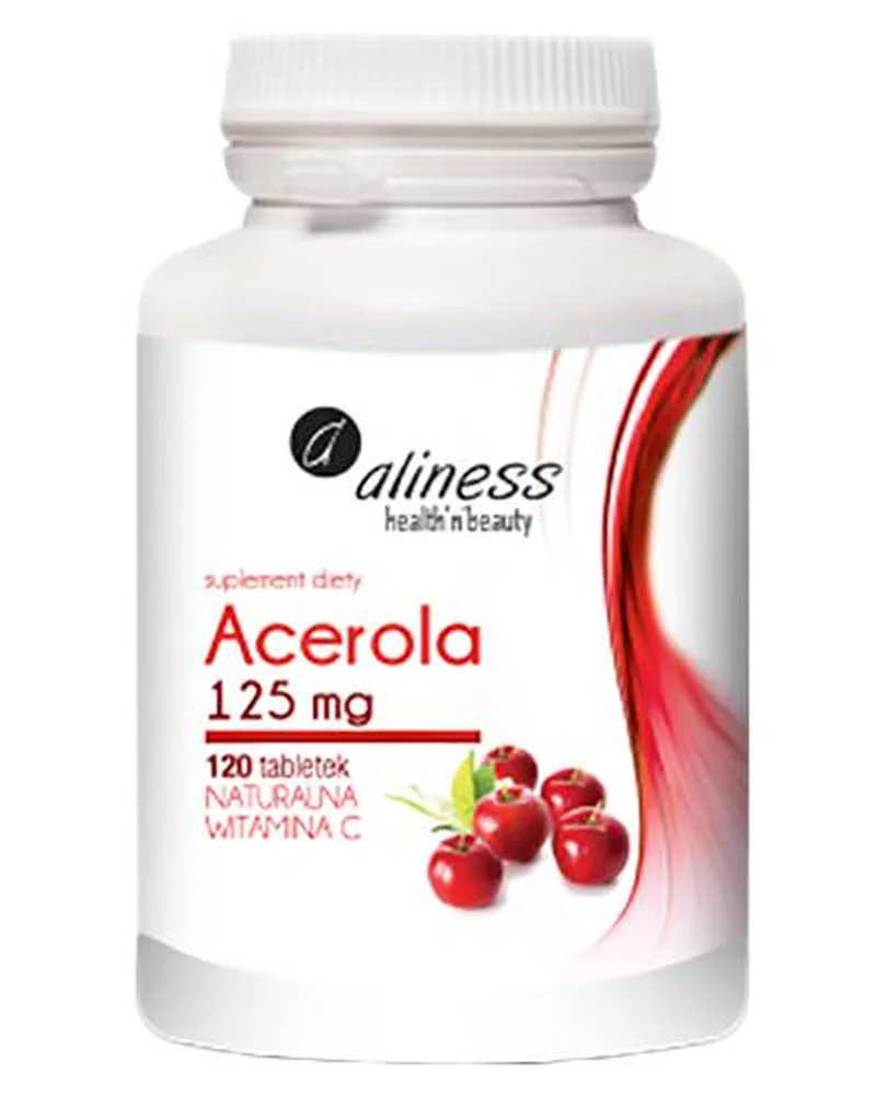 Aliness Acerola 125 mg ist ein Nahrungsergänzungsmittel, das Acerola-Fruchtextrakt (Malpighia glabra) mit natürlichem Vitamin C enthält. Das Produkt ist für Erwachsene bestimmt.