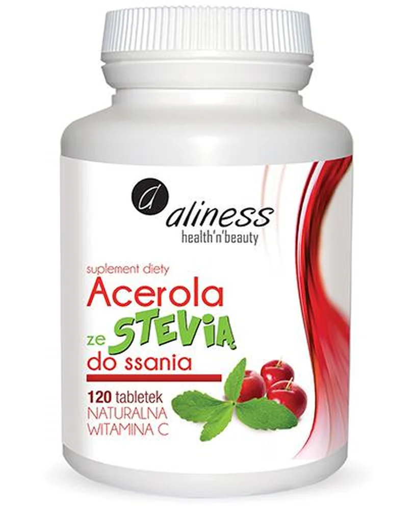 Aliness Acerola mit Stevia zum Lutschen ist ein Nahrungsergänzungsmittel, das Acerola-Fruchtextrakt sowie Steviolglykoside aus Stevia enthält. Das Produkt ist für Erwachsene bestimmt.
