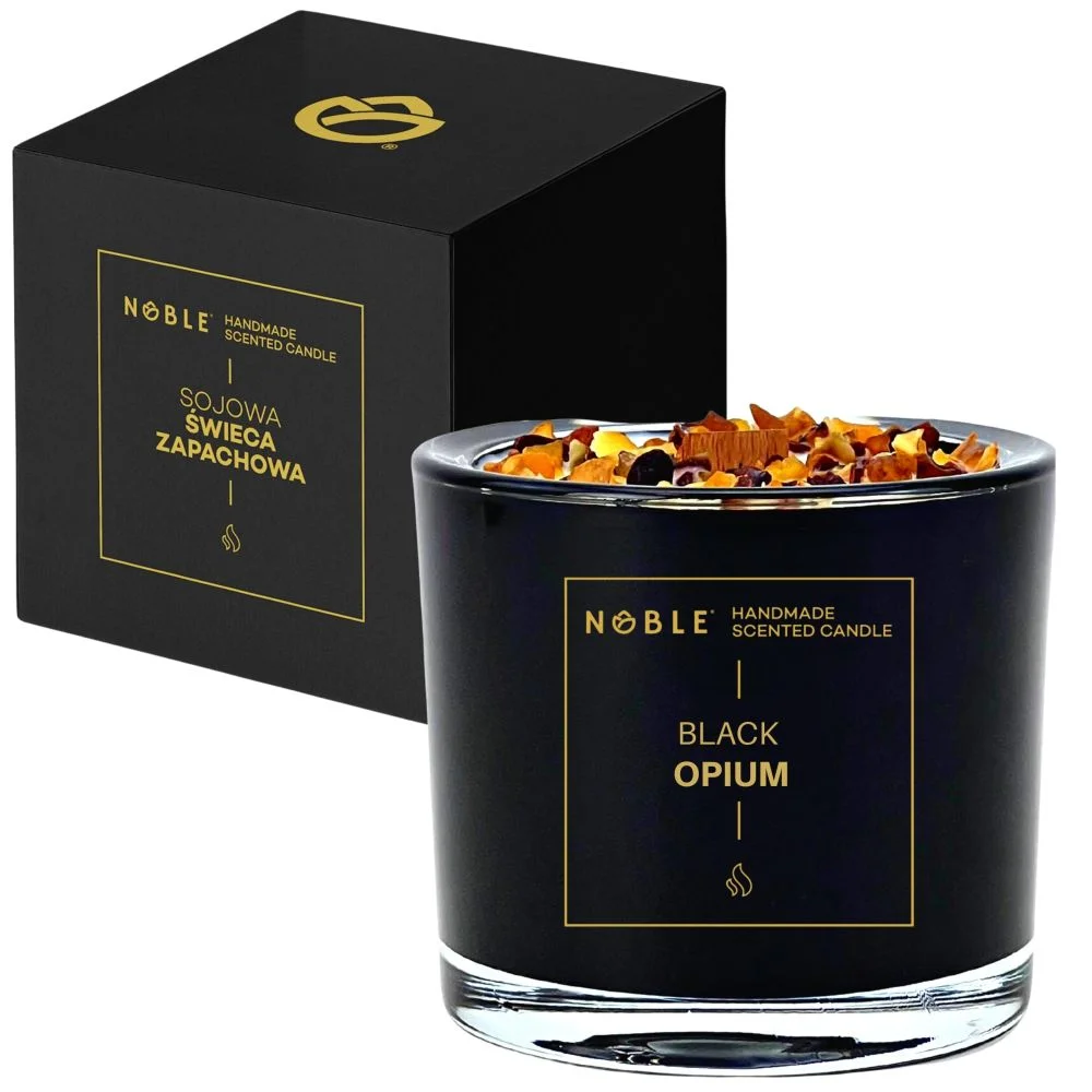 Die große Sojakerze mit Black Opium Duft bietet ca. 50 Stunden Brenndauer und 100 % Natürlichkeit. Verziert mit natürlichem Bernstein – das Markenzeichen von NOBLE!