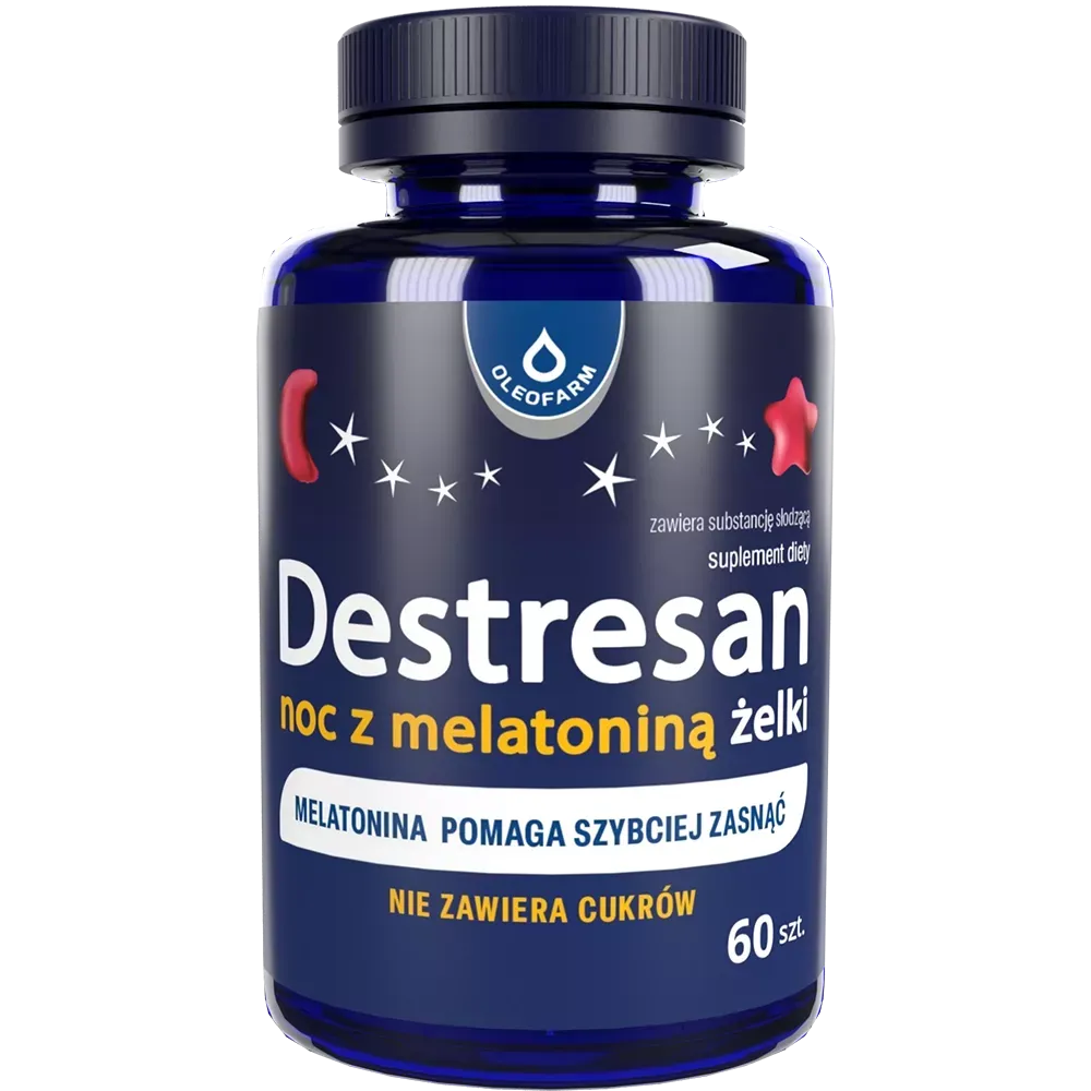 Destresan Nacht mit Melatonin sind Fruchtgummis als Nahrungsergänzungsmittel, entwickelt zur Ergänzung der täglichen Ernährung von Erwachsenen mit Einschlafproblemen, Nervosität oder Stress sowie für Personen im Schichtdienst.