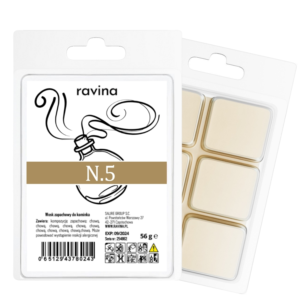 Das Duftwachs N.5 von Ravina ist inspiriert vom legendären Duft Chanel No. 5. Eine pudrige, leicht blumige, sehr feminine und raffinierte Komposition.