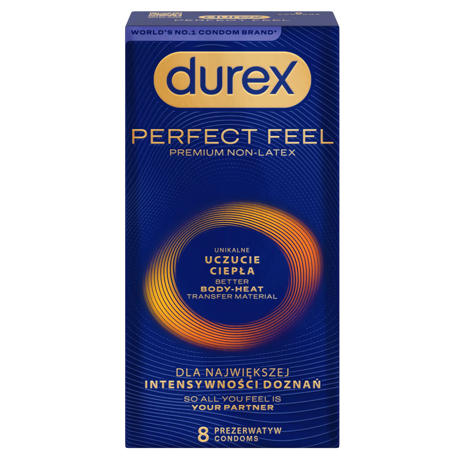 Durex Perfect Feel Premium Non-Latex Kondome latexfrei, einzigartiges Wärmegefühl, 8 Stück