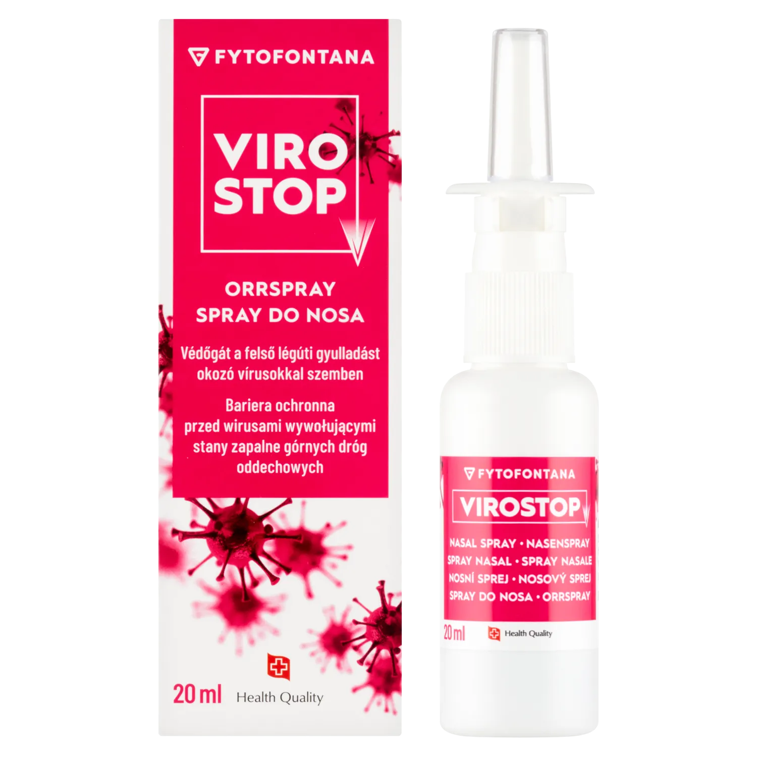 Fytofontana ViroStop Nasenspray ist ein Medizinprodukt für Erwachsene und Kinder ab 6 Jahren zur Anwendung als Schutz vor bakteriellen und viralen Infektionen. Es wird auf die Nasenschleimhaut aufgetragen, da sich dort Viren ansiedeln und vermehren, die Erkältungen oder Grippe verursachen. Die Formel enthält natürliche Inhaltsstoffe wie: