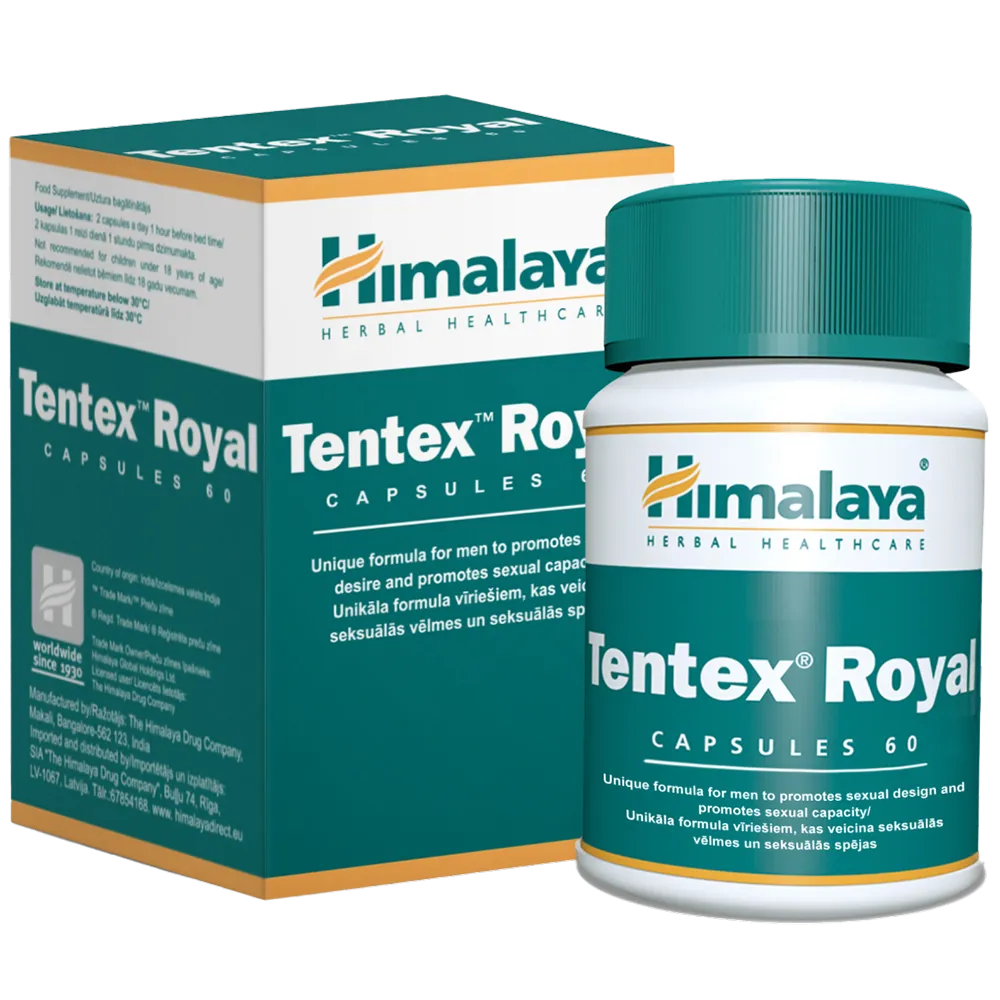 Himalaya Tentex™ Royal ist ein Nahrungsergänzungsmittel in Tablettenform für Männer. Die ayurvedische Formel enthält Extrakte aus Tribulus terrestris (Erd-Burzeldorn), Safran, Asteracantha longifolia, Blepharis edulis sowie Mandeln.