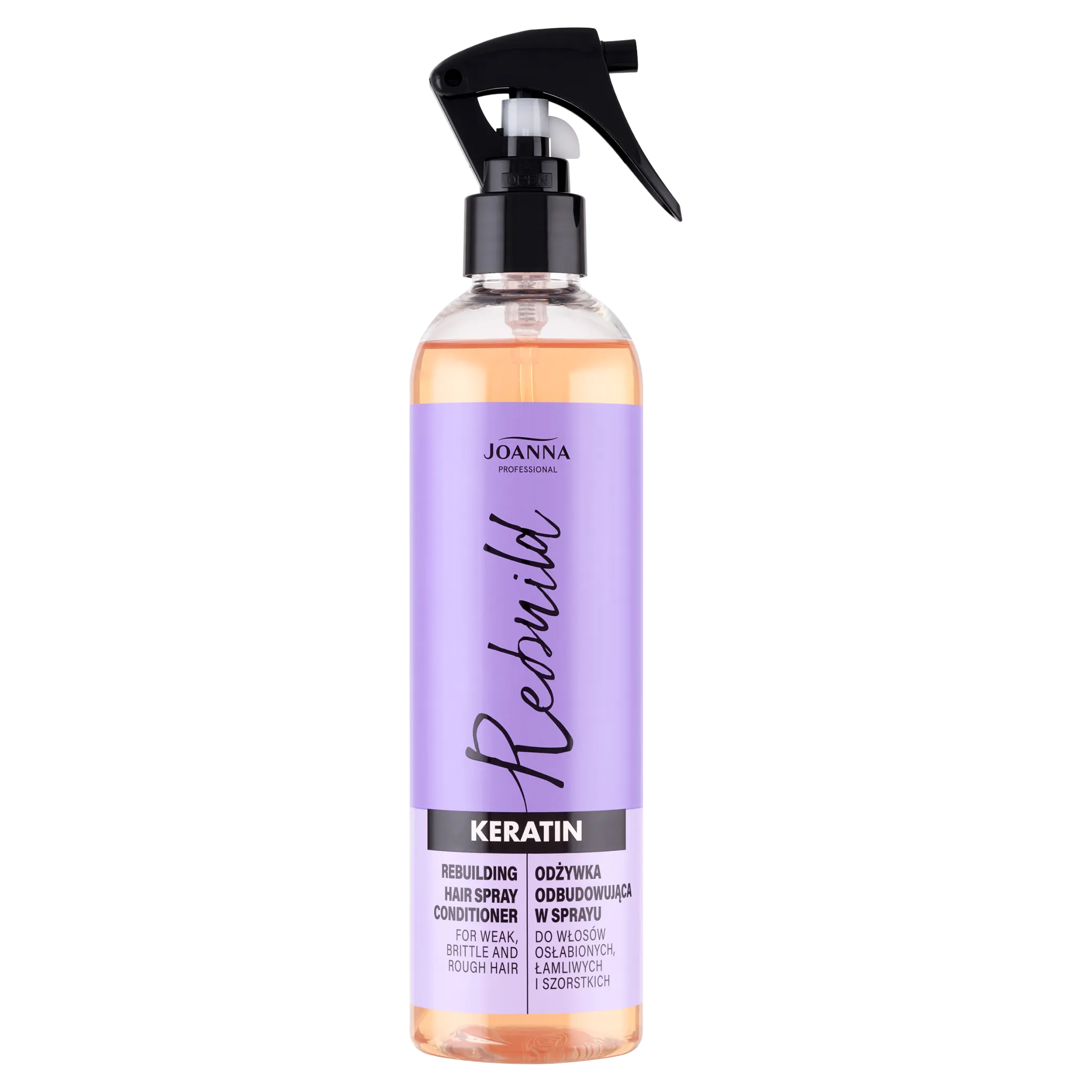 Die aufbauende Haarspülung im Spray Joanna Professional Keratin wurde speziell für den Einsatz in Friseursalons entwickelt. Sie eignet sich ideal zur Pflege von durch Stylingbehandlungen geschwächtem, brüchigem, rauem und schwer kämmbarem Haar.