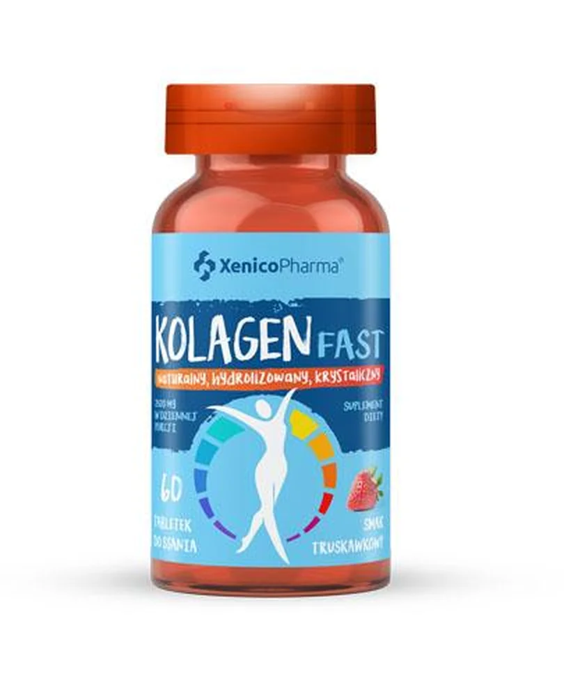 Kolagen FAST ist ein einzigartiges Produkt, das die Ernährung mit hochwertigem, natürlichem Kollagen in hoher Dosis (500 mg) sowie Vitamin C ergänzt. Vitamin C trägt zur Kollagenbildung bei und unterstützt so die normale Funktion von Knochen, Knorpel und Haut. Kollagen ist ein wichtiger Baustein des Bindegewebes.