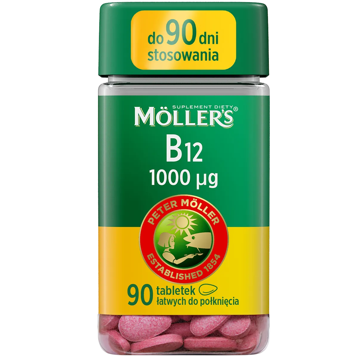 Möller’s B12 1000 µg ist ein Nahrungsergänzungsmittel in Tablettenform, das für Erwachsene entwickelt wurde, die ihre tägliche Ernährung mit Vitamin B12 in Form von Cyanocobalamin ergänzen möchten.