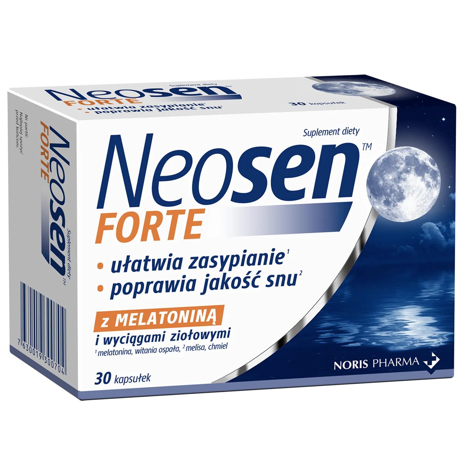 Neosen Forte ist ein Nahrungsergänzungsmittel zur Ergänzung der Ernährung von Erwachsenen. Es enthält Melatonin, pflanzliche Extrakte (Melisse, Hopfen, Ashwagandha, Safran) sowie Magnesium, Vitamin B6 und Thiamin.