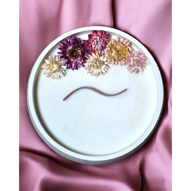 Der Duft von Ylang-Ylang erfüllt den Raum mit einem exotischen, süß-blumigen Aroma – ideal zum Entspannen und Abschalten. Auf der Oberfläche der Kerze befinden sich natürliche, getrocknete Blüten, die ihr einen einzigartigen Charme und besondere Eleganz verleihen.