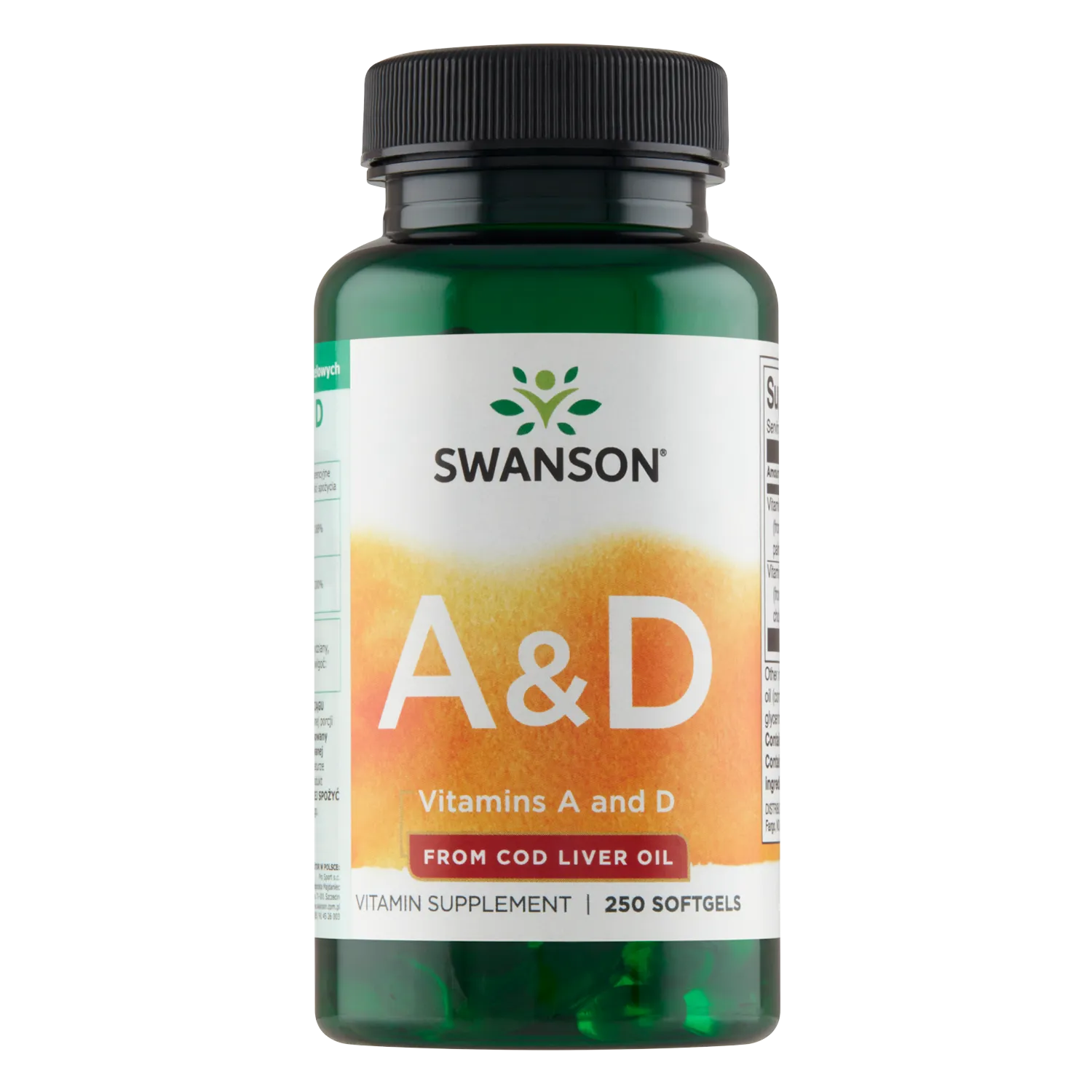 Swanson® Vitamin A & D ist ein Nahrungsergänzungsmittel in Form von Weichkapseln mit einem hohen Gehalt an Vitamin A und Vitamin D, die u. a. aus Lebertran gewonnen werden. Die empfohlene Tagesdosis liefert 1500 µg Vitamin A sowie 400 I.E. Vitamin D. Das aus der Leber von Kabeljau gewonnene Öl wird als Lebertran bezeichnet und ausschließlich aus dieser Fischart hergestellt.
