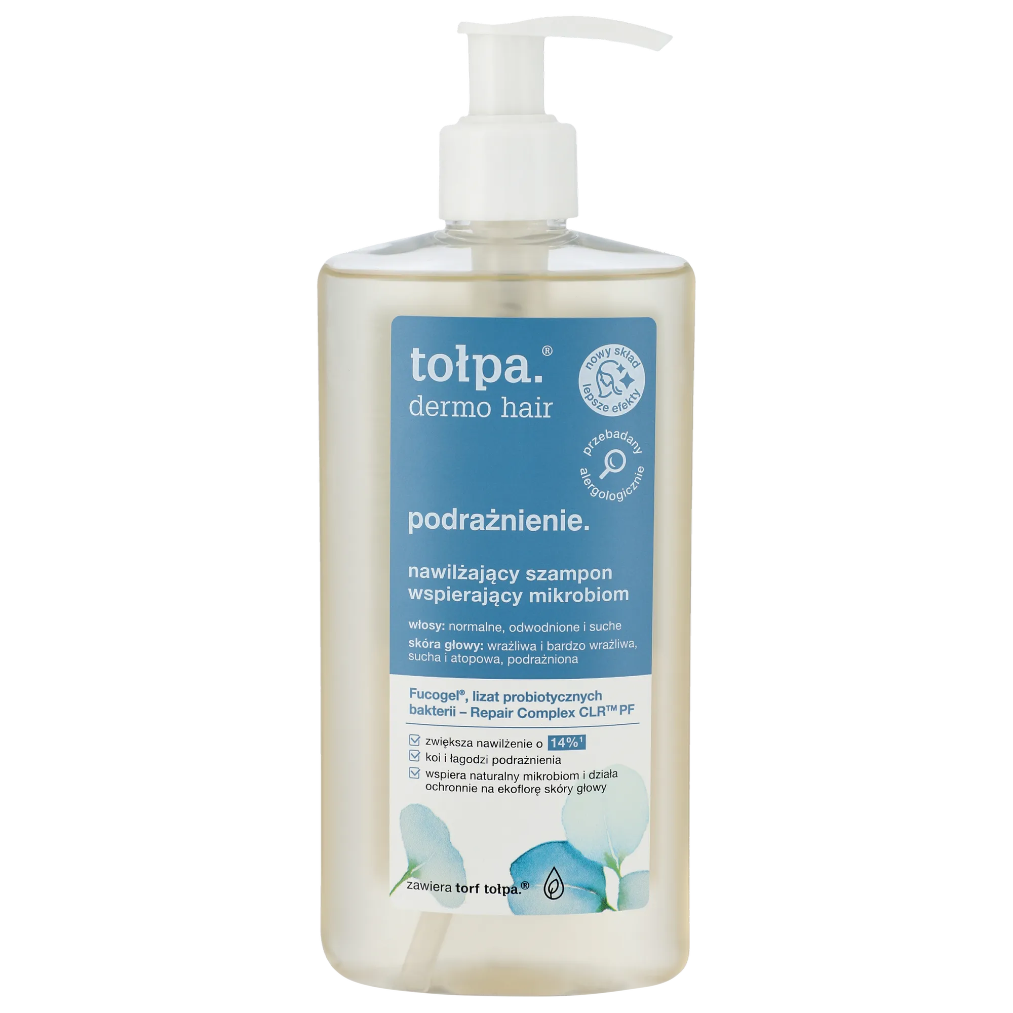 Tołpa Dermo Hair Irritation ist ein feuchtigkeitsspendendes Shampoo, das den Mikrobiom der Kopfhaut unterstützt und für die sanfte Reinigung von Haaren und Kopfhaut entwickelt wurde. Es eignet sich ideal für normales, trockenes und dehydriertes Haar und kann täglich angewendet werden.
