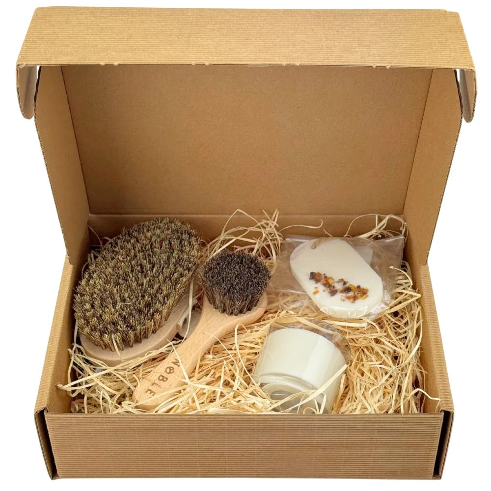 Universelles Geschenkset – Körper- und Gesichtsbürsten, Duftwachs und Sojawachs-Kerze